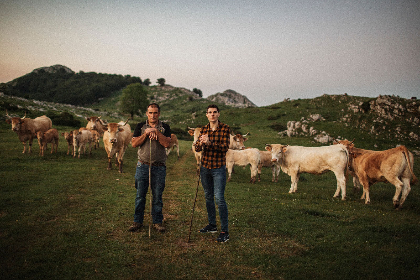 Nuestra carne de ternera pertenece a la cuadra Aralarko, situada en el valle de la Sakana en Lakuntza. Nuestras vacas y sus crías de la raza pirenaica pastan por la sierra de Aralar, esta sierra está catalogada como pasto ecológico. Los terneros nacen en el monte para que así salga un animal sano y fuerte. Desde que nace hasta los 6 meses se alimenta de teta de su madre, y luego pasa a ser alimentado a base de cereales y forraje de producción propia.